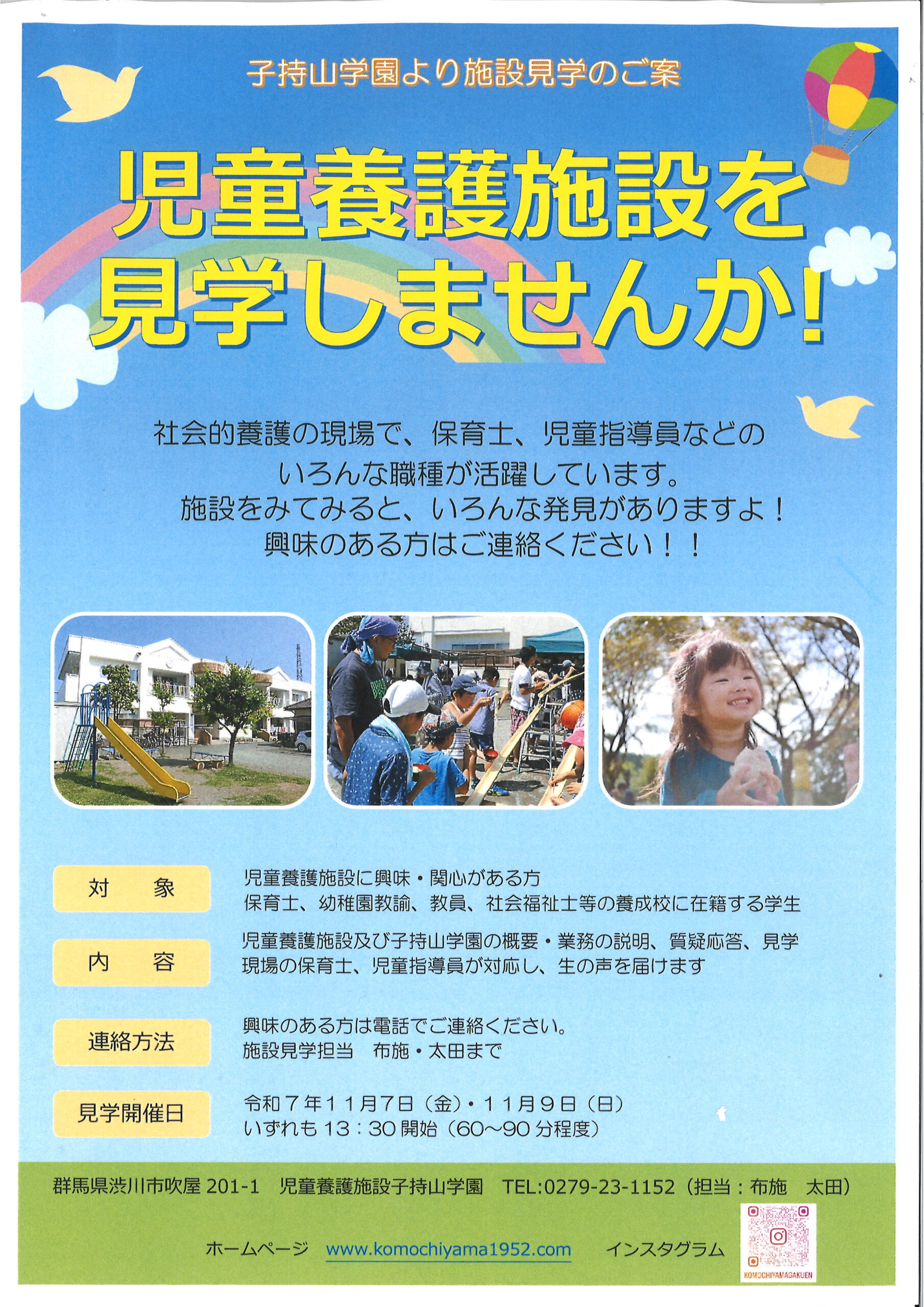 児童養護施設でのお仕事にご興味がおありの方、また、興味はあるけれど、どうしようかな…と迷われていらっしゃる方々など、どうぞ、ご相談ください。お待ちしております。
