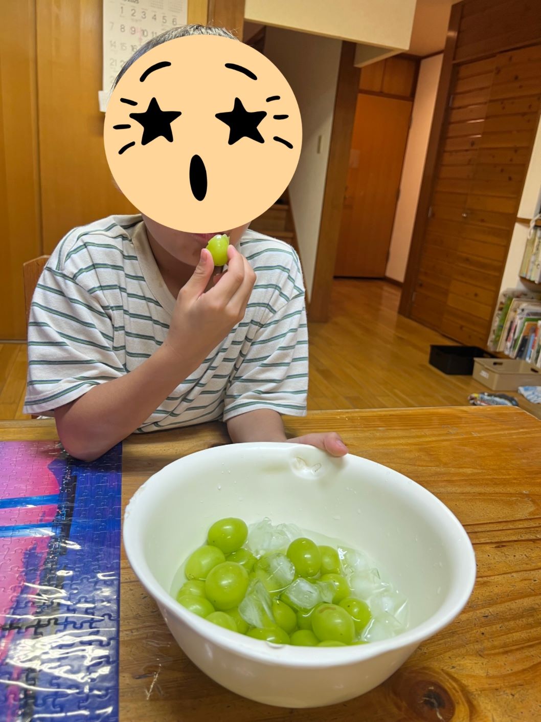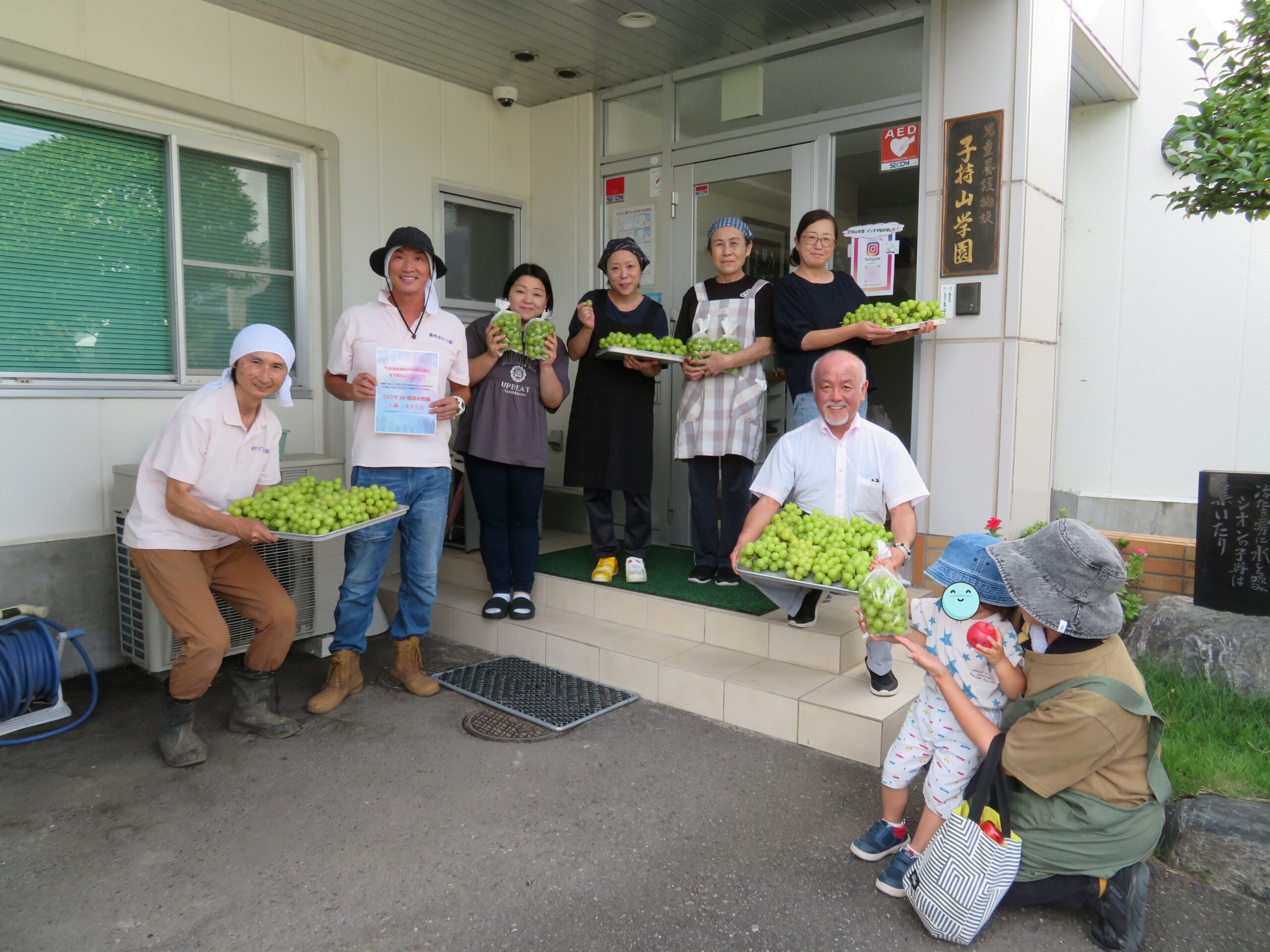 青木ぶどう園様が『児童養護施設の子どもさん達にブドウを届けようプロジェクト』を立ち上げてくださり、ぶどう園で栽培したミョウガの売り上げや、このプロジェクトに賛同してくださった方々の寄付金でシャインマスカットを届けてくださいました。
