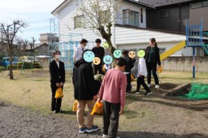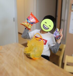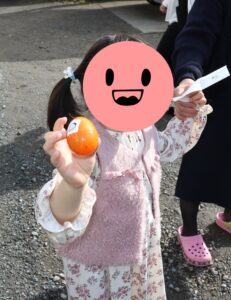 朝食後は、恒例のイースターエッグ探し。年齢別にクイズが出され、クイズの答えが書かれたたまごを見つけ出すことができたらお菓子をいただけます。このお菓子は、篠原欣子記念財団様からのご支援です。たくさんのお菓子にとても喜んでいました。ありがとうございます。